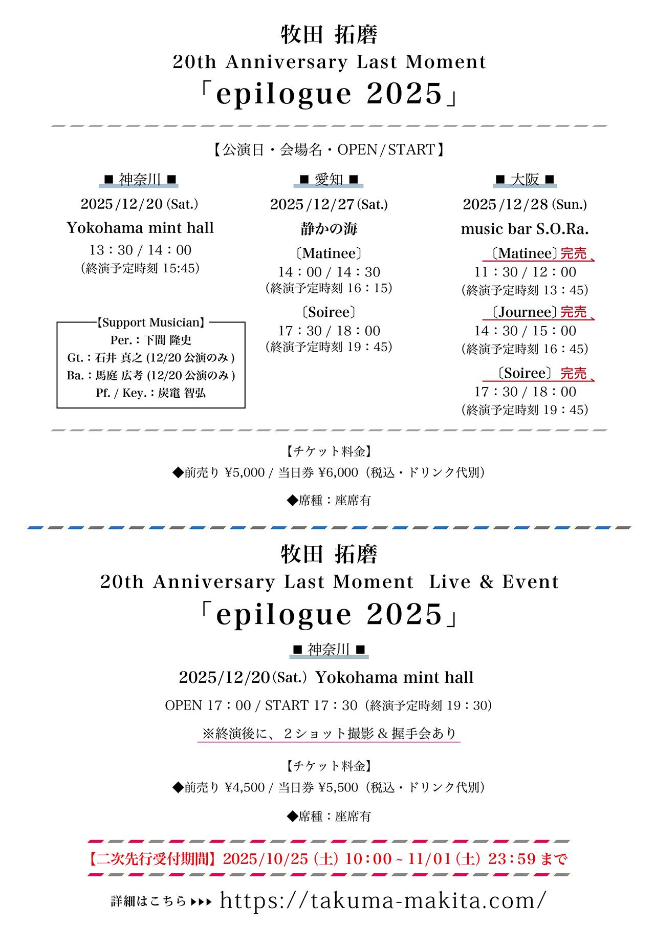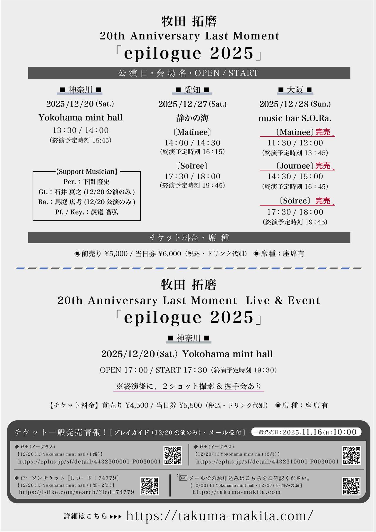 牧田 拓磨 20th Anniversary Last Moment「epilogue 2025」(神奈川)
