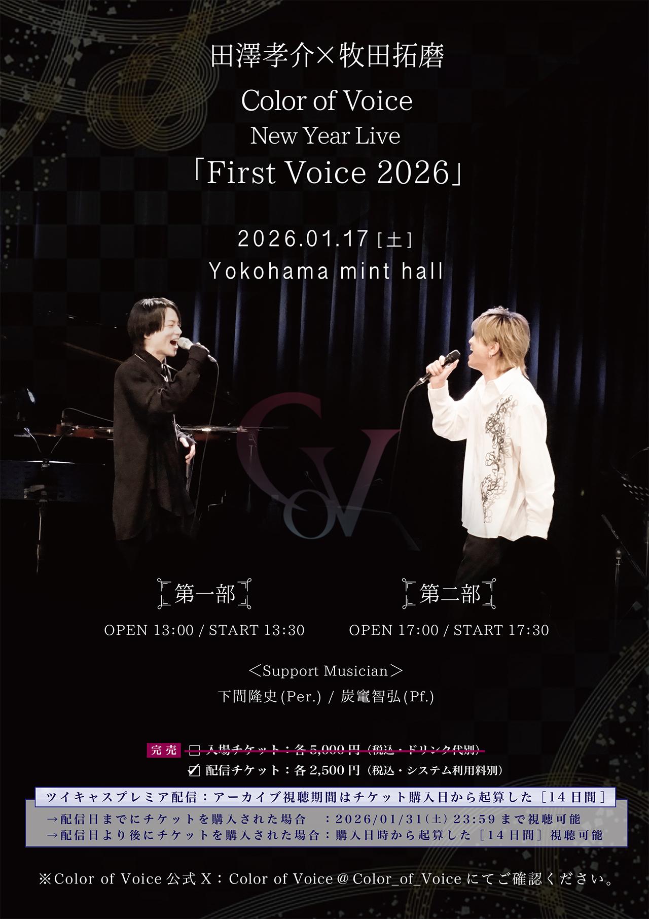 2026/01/17(土)田澤孝介×牧田拓磨 Color of Voice New Year Live「First Voice 2026」【2026.01.13更新】