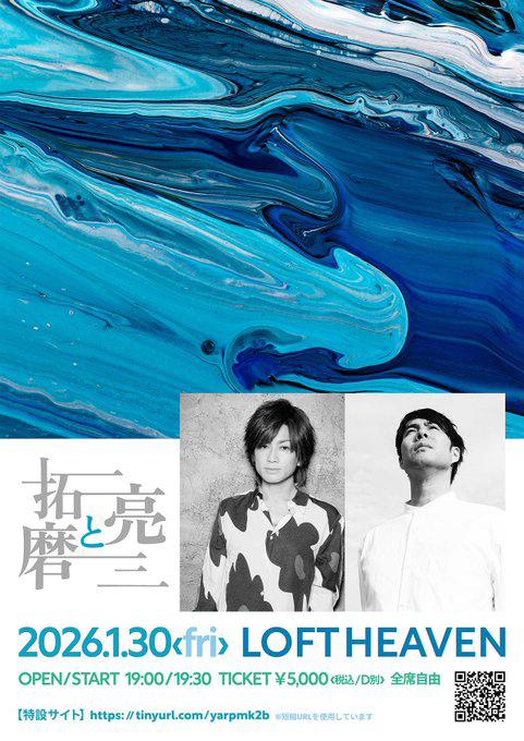2026/01/30(fri)「拓磨と亮三」渋谷LOFT HEAVEN:チケット完売!【2026.01.19更新】