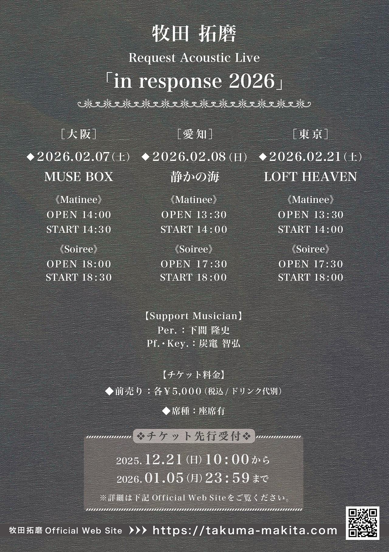 牧田拓磨 Request Acoustic Live「in response 2026」開催決定!【2025.12.20更新】